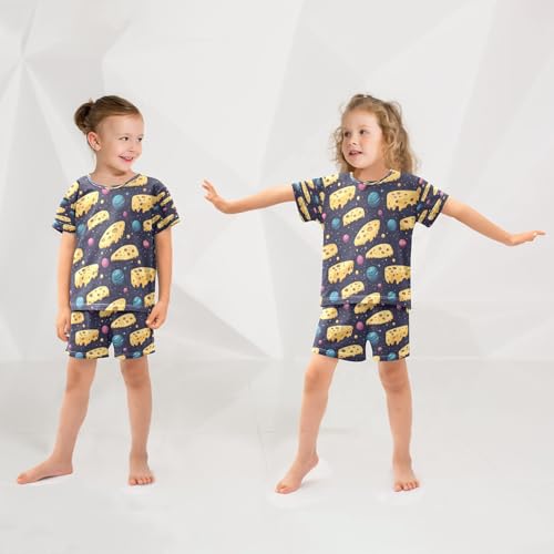 Pajama Sets Short Sleeve Cheese Slices and Planets Pattern Soft Cotton Summer Sleepwear 2 Piece PJS Size 5-14T 5