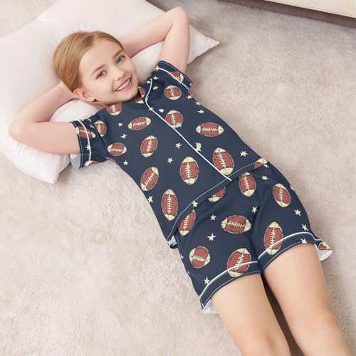 ALAZA Retro Rugby Star Ball Blue Satin Pajamas Set Short Sleeve Button Down Sleepwear Summer Pjs 2 Piece 4