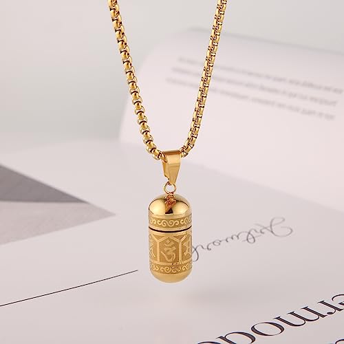 STWTR Tibetan Buddhist Meditation Stainless Steel Pendant Memorial Cremation Grey Pill Container Necklace for men and women with 23.6 "+1.9" necklace 5