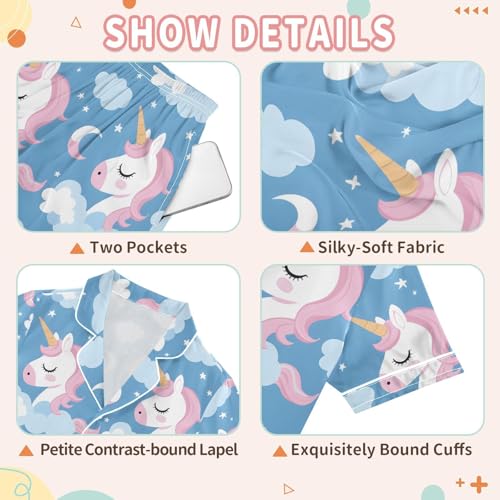 ALAZA Unicorn Moon Star Blue Pajamas Satin Pajama Set Short Sleeve Button Down Sleepwear 5