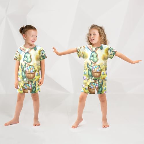 Easter Dino Eggs Cute Pajama Set Short Sleeve Pajamas Shorts Sets Cotton Soft Loungewear Sleepwear 5Y 4