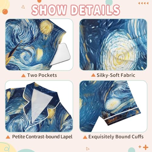 More information about ALAZA Starry Sky House Van Gogh Satin Pajamas Set Short Sleeve Button Down Sleepwear Summer Pjs 2 Piece