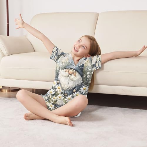 ALAZA Gnome Daisy Blossom Dragonfly Satin Pajamas Set Short Sleeve Button Down Sleepwear Summer Pjs 2 Piece 6