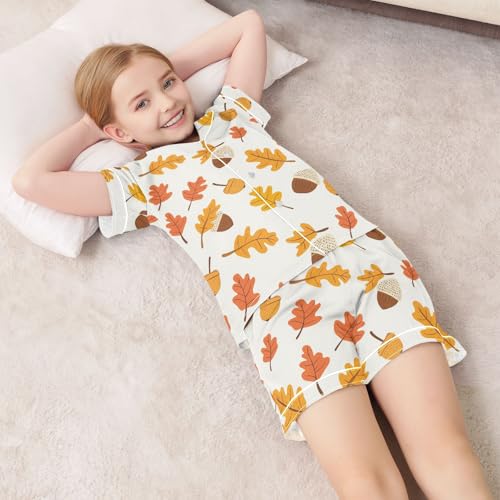 Autumn Acorn Prints Summer Satin Pajama Set, Cute Button-Down Sleepwear Pj Set for Sleep Wears 7