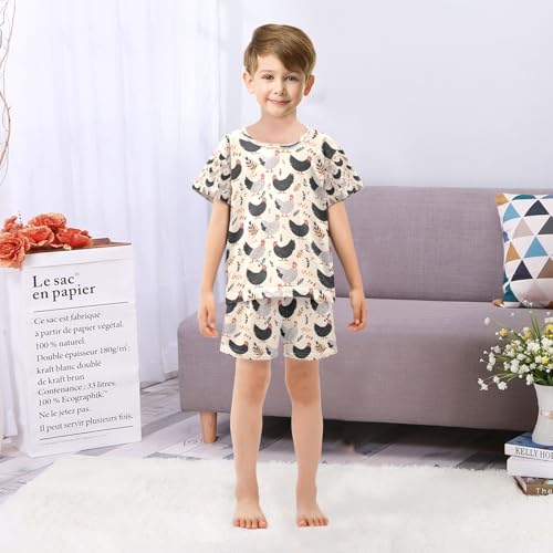 senya Black White Chicken Leaves A Summer Pajamas Set Short Cotton Sleepwear 2 Piece 4