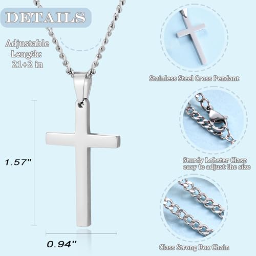 EPIRORA Cross Necklaces Gifts for Men Him, Stainless Steel Cross Necklace Cuban Chain Pendant Necklace Gifts for Son Grandson Brother Nephew Mens 3