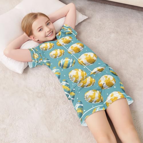 senya Watercolor Yellow Egg Painting Satin Summer Pajama Sets Silk Short Sleeve Button Down Sleepwear 4