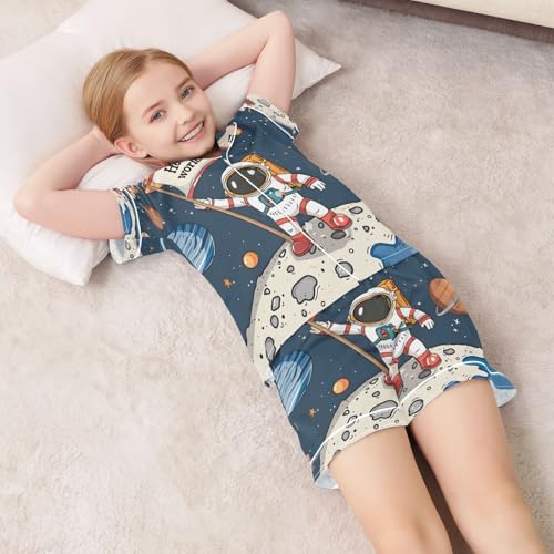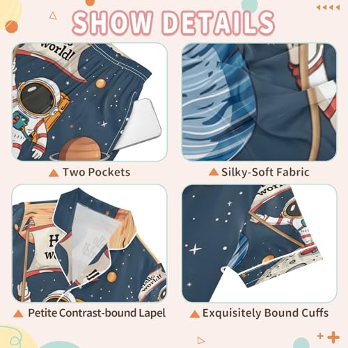 ALAZA Astronaut Solar System Universe Space Planet Satin Pajamas Set Short Sleeve Button Down Sleepwear Summer Pjs 2 Piece 6