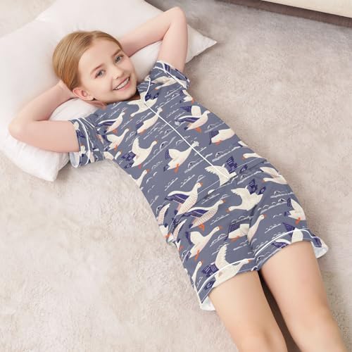 More information about ALAZA Goose Ocean Vintage Satin Pajamas Set Short Sleeve Button Down Sleepwear Summer Pjs 2 Piece