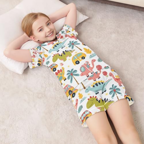 ALAZA Cute Dinosaur Car Palm Tree Pajamas Satin Pajama Set Short Sleeve Button Down Sleepwear 1