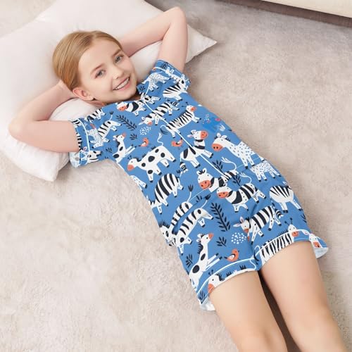 ALAZA Cute Bird Zebra Cow Blue Pajamas Satin Pajama Set Short Sleeve Button Down Sleepwear 3