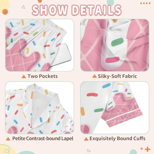 ALAZA 3d Ice Cream Lovely Stylish Satin Pajamas Set Short Sleeve Button Down Sleepwear Summer Pjs 2 Piece 4