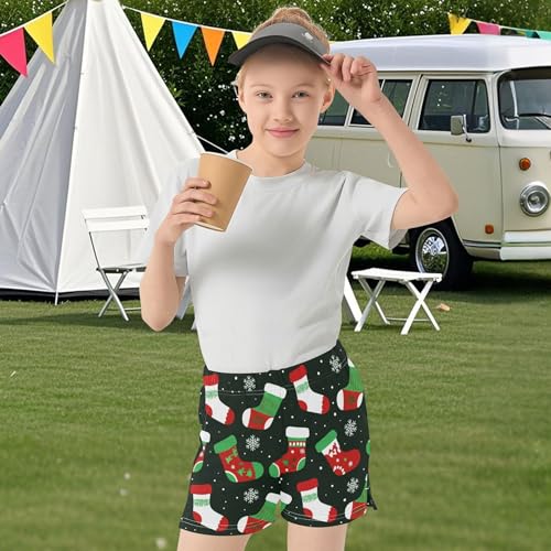 Girls Christmas Stockings Print Athletic Lounge Shorts Cute Pajama Comfy Summer Activewear for Kids Teens, X-Small 6