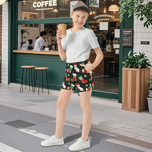 Girls Christmas Stockings Print Athletic Lounge Shorts Cute Pajama Comfy Summer Activewear for Kids Teens, X-Small 4
