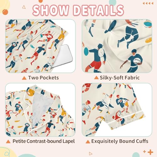 ALAZA Rugby American Football Pajamas Satin Pajama Set Short Sleeve Button Down Sleepwear 4