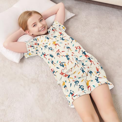 ALAZA Rugby American Football Pajamas Satin Pajama Set Short Sleeve Button Down Sleepwear 2