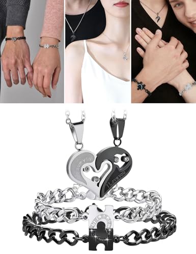 • Adjustable Bracelet & Necklace Sizes: Featuring a heart-shaped pendant (20mm x 23mm) and a 22-inch couple's necklace, this set is designed to be versatile.The men’s bracelet measures 6.9 inches with an additional 1.97-inch extension, while the women’s bracelet is 6.1 inches with a 1.97-inch extension, allowing for a personalized fit according to your preference.