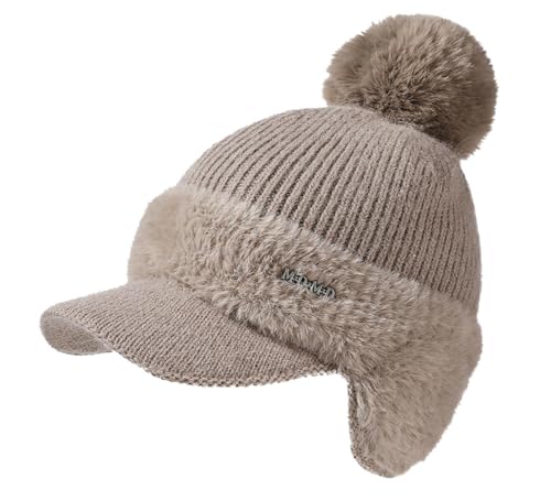 Knit Baseball Caps for Women Cute Beret Hats with Earmuffs Pompom Winter Warm Sweet Hats for Cold Weather 6