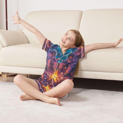 ALAZA Astronaut Starry Sky Fire Space Satin Pajamas Set Short Sleeve Button Down Sleepwear Summer Pjs 2 Piece 7