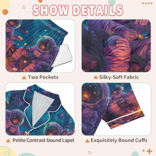 More information about ALAZA Astronaut Starry Sky Fire Space Satin Pajamas Set Short Sleeve Button Down Sleepwear Summer Pjs 2 Piece