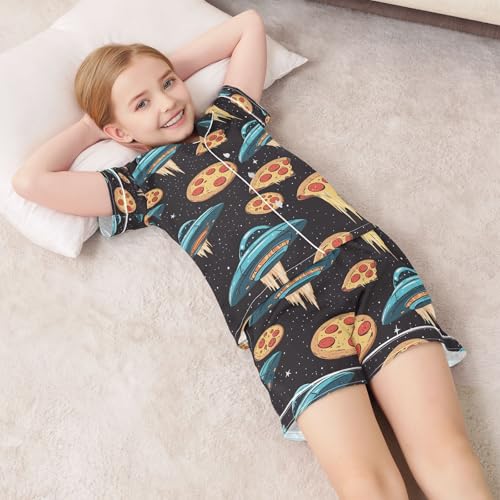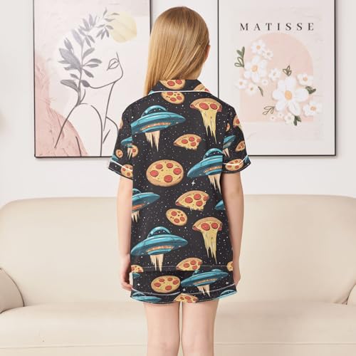 senya Ufo Pizza Satin Summer Pajama Sets Silk Short Sleeve Button Down Sleepwear 1
