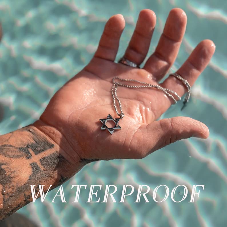 • ♥ PREMINUM MATERIALS ♥ Star of David necklace for men, both pendant and Rolo box chain are made from 316L stainless steel with 14 K Gold Filled. Gold filled is a very chick layer of gold bonded to stainless steel. Never get tarnished or change color, waterproof, Lead free and hypoallergenic, no irritation for sensitive skin.