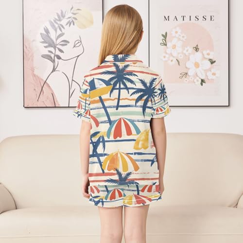 senya Coconut Trees Umbrellas Satin Summer Pajama Sets Silk Short Sleeve Button Down Sleepwear 1