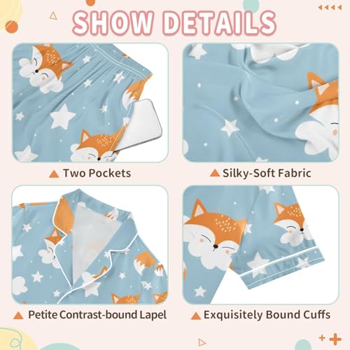 ALAZA Fox White Cloud Pajamas Satin Pajama Set Short Sleeve Button Down Sleepwear 4