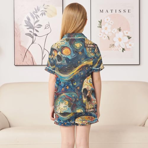 senya Human Skeleton Satin Summer Pajama Sets Silk Short Sleeve Button Down Sleepwear 1
