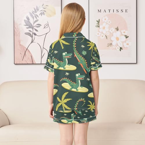 senya Crocodile Surfer Cartoon Satin Summer Pajama Sets Silk Short Sleeve Button Down Sleepwear 2