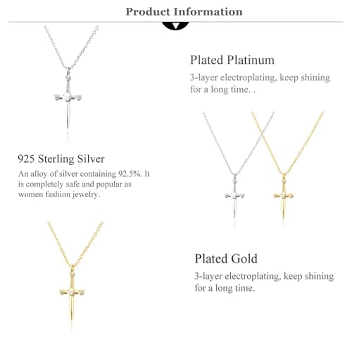 925 Sterling Silver Gothic Collar Sword Necklace For Men, 14K Yellow Gold Vintage Sword Pendant Katana Necklace - Shiny CZ Dagger Necklace For Women, Master Sword Necklace For Halloween Christmas Gifts 5