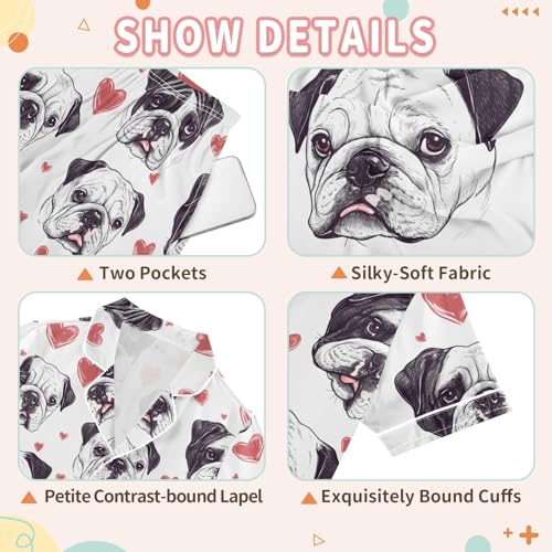 More information about Bulldog Love Heart Pattern Summer Satin Pajama Set, Cute Button-Down Sleepwear Pj Set for Sleep Wears