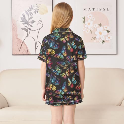 senya Butterflies Magic Satin Summer Pajama Sets Silk Short Sleeve Button Down Sleepwear 6
