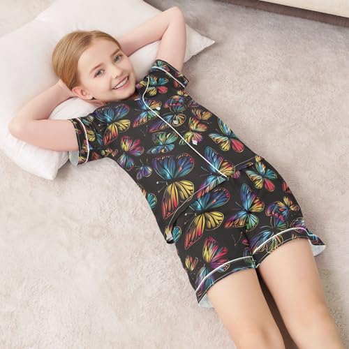 senya Butterflies Magic Satin Summer Pajama Sets Silk Short Sleeve Button Down Sleepwear 1