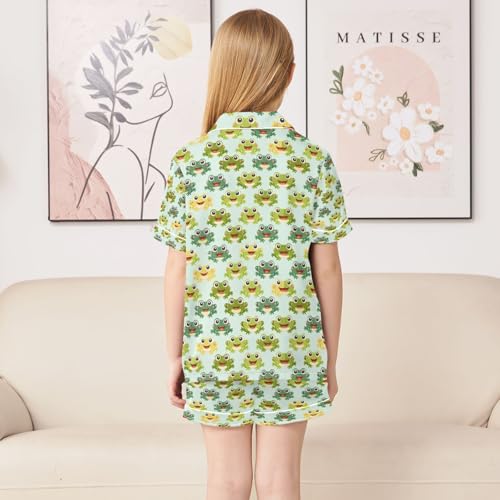 senya Green Frog Satin Summer Pajama Sets Silk Short Sleeve Button Down Sleepwear 2