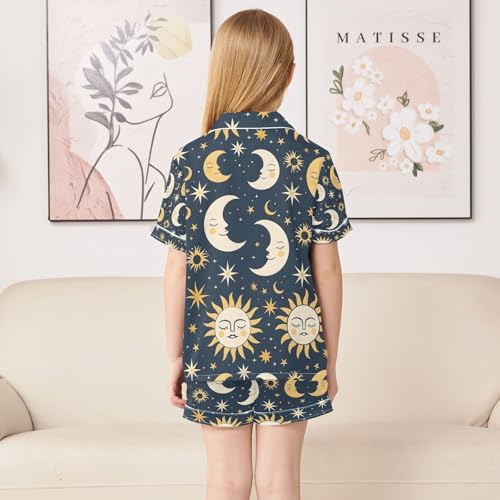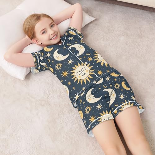 HOT ! senya Moon and Star Satin Summer Pajama Sets Silk Short Sleeve Button Down Sleepwear