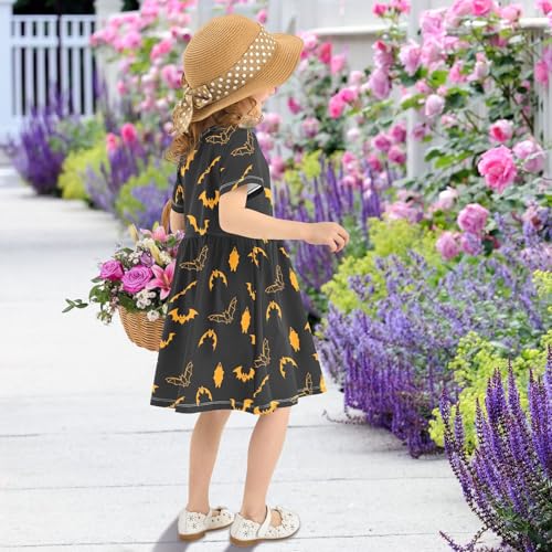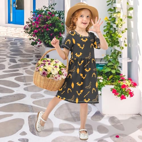 Toddler Girls Halloween Bats Dress Short Sleeve A-Line Casual Clothes for Home Party Beach Sundress 2-8T 7