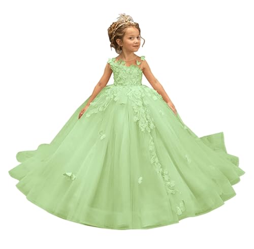 • Lace Appliques Flower Girl Dress,Ruffles Tulle Flower Girl Dresses for Wedding, Flower Girl Dress with Sleeveless,, Pageant Princess Dress for Girls,First Communion Dress,Formal Party Wedding Flower Girl Dress Long