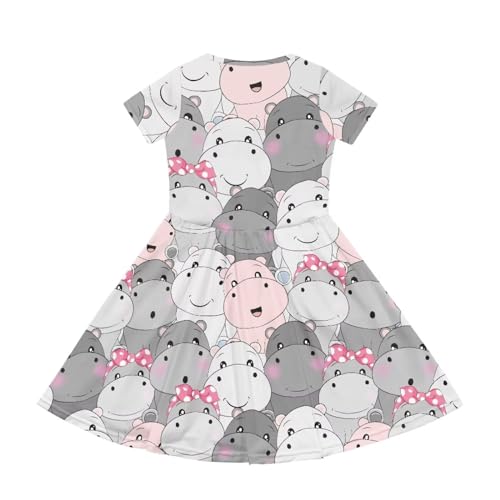 Girls Summer Dress Short Sleeve Swing Skater A-Line Funny Print Casual Party Dress with Pockets 1