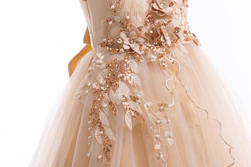 • Style: Weileenice golden girls holiday party dress, girls ball gown rose gold. 3D lace flowers, cold shoulder dress, ankle length, semi-fixed lace pieces, A-line maxi dress, hidden zip on the back, the sashes attached at the side seams can be tied a bowknot at the back. Classical elegant shoulder design, the shoulders have a fluffy tulle with elastic straps inside. Exquisite lace embroidery adorns the chest and waist, with delicate accents, multi-layer tulle making the dress more gorgeous