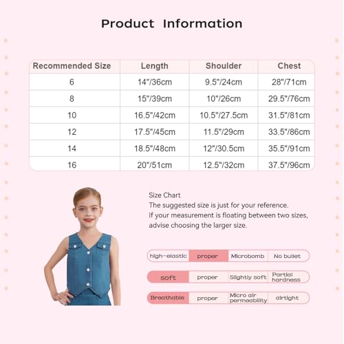Kids Girls Vintage Sleeveless Denim Jacket Outerwear Button Down Denim Vest V-Neck Waistcoat Tops with Pocket 6