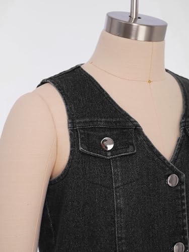 Kids Girls Vintage Sleeveless Denim Jacket Outerwear Button Down Denim Vest V-Neck Waistcoat Tops with Pocket 5