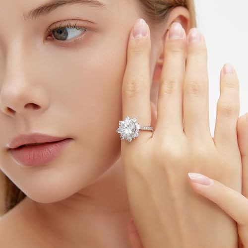 0.5/1.5/2/3CT Moissanite Engagement Rings for Women, D Color VVS1 S925 Sterling Silver Wedding Band Flower shape Engagement Moissanite Ring with 18K Gold Plated 5