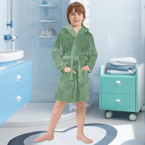 Beautiful Green Leather Girls Robe With Hood Kids Bathrobes For Girls 6
