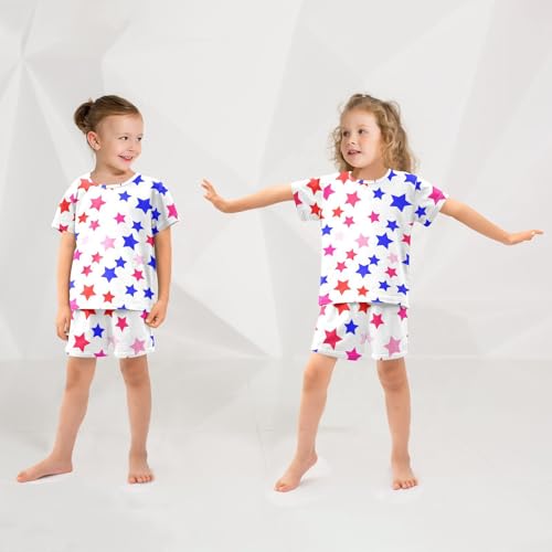 Star Blue Red Pajama Set Short Sleeve Nightwear Soft Clothes Set Summer Pajamas Cotton 5Y 6