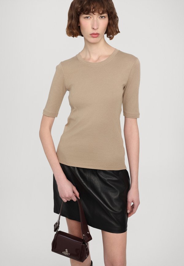 HOT ! CREW NECK SHORT SLEEVE - Basic T-shirt - dark beige