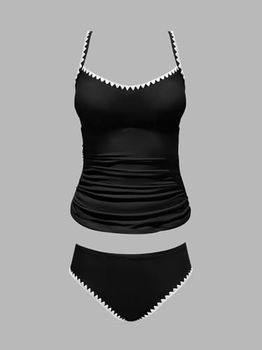 More information about CUPSHE Women's Tankini Sets Two Piece Swimsuit Scoop Neck Mid Rise Adjustable Straps Shell Stitched (XS-4XL)