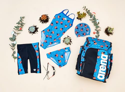 • Complete your stylish look with the matching swim cap, goggles and backpack