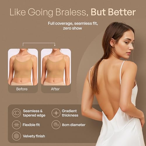 • FEEL CONFIDENT IN ANY OUTFIT - Say goodbye to visible lines! These ultra-thin, seamless nipple covers for women are designed with tapered edges and gradient thickness for a completely invisible fit under your favorite tops, dresses, or swimsuits. Whether you're dressing up for prom, a wedding, the beach, or a casual outing, they’ll keep you feeling confident and worry-free.