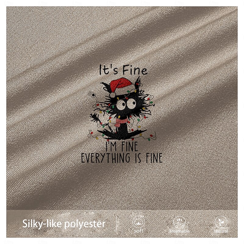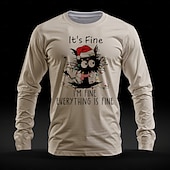 Highlights [Fabric] : Constructed from high-quality polyester, this long-sleeve t-shirt offers a soft and comfortable feel with micro-elastic properties. This ensures breathability and allows for ease of movement, making it ideal for year-round wear. [Fit] : Featuring a regular fit, the t-shirt provides a classic and comfortable silhouette suitable for a variety of body types. The crew neck design adds to its casual and relaxed appeal. [Design Highlights] : This shirt stands out with its playful and quirky design, showcasing a cartoon black cat tangled in Christmas lights and wearing a Santa hat. The 3D print technique enhances the vibrant colors and intricate details, while the humorous "It's Fine, I'm Fine, Everything is Fine" text adds a light-hearted, festive touch. [Occasions] : Perfect for street style and casual settings, this t-shirt is an excellent choice for holiday gatherings, Christmas celebrations, or simply adding a fun element to your everyday wardrobe. Its distinctive design makes it a conversation starter at any festive occasion. [Size Range] : Available in sizes S, M, L, XL, XXL, and XXXL, this t-shirt caters to a wide range of adult wearers, ensuring a comfortable fit for everyone.